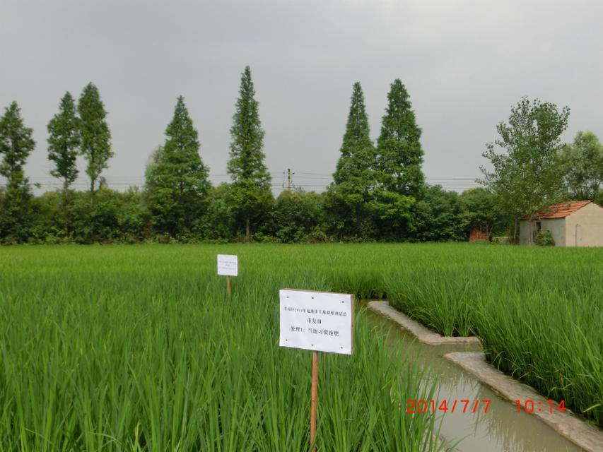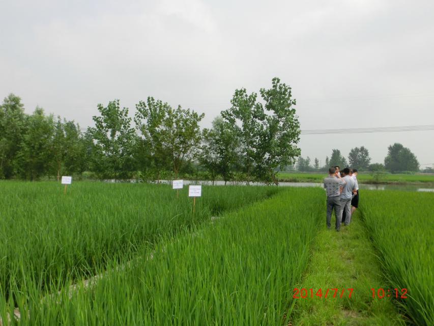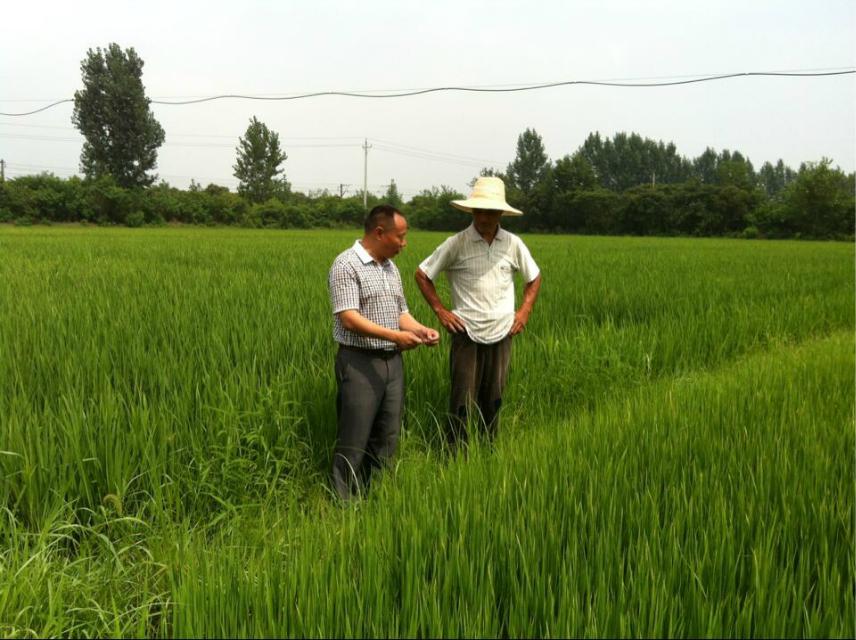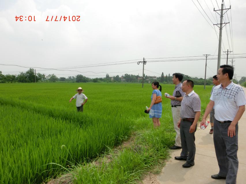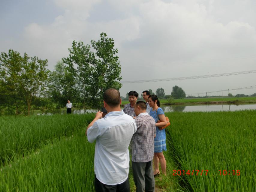2014年7月7日,到湖北省孝南區(qū)農(nóng)業(yè)局,和劉局長(zhǎng)、陶站長(zhǎng)察看公司“施地佳”土壤調(diào)理劑連續(xù)3年的示范地