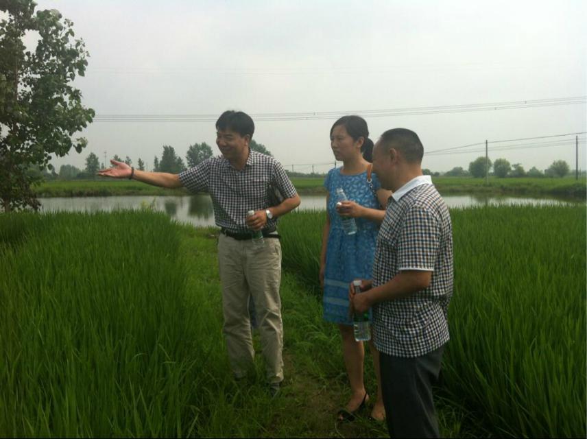 入夏以來(lái),成都華宏生態(tài)農(nóng)業(yè)科技有限公司總經(jīng)理李智強(qiáng)先后趕往四川鹽源縣、甘肅張掖市等地方,前幾天(2014年7月7日)又應(yīng)湖北省孝南區(qū)農(nóng)業(yè)局的邀請(qǐng),帶領(lǐng)公司技術(shù)員趕到該地察看連續(xù)3年公司生產(chǎn)的“施地佳”土壤調(diào)理劑在水稻上的試驗(yàn)示范情況。在孝南區(qū)農(nóng)業(yè)局劉春清局長(zhǎng)和農(nóng)業(yè)局土肥站陶小娥站長(zhǎng)的陪同下,頂著酷暑,親臨試驗(yàn)地察看和訪問,其心可見,其情可嘉。不辭辛勞為哪般,只為土壤改良作貢獻(xiàn)!