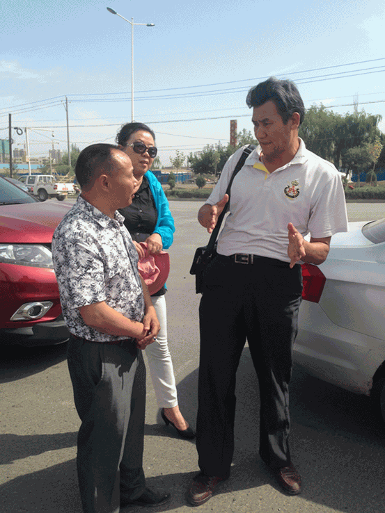 圖為:維族教授艾買爾江在向李總介紹項(xiàng)目實(shí)施情況,并說你們的”施地佳“土壤調(diào)理劑應(yīng)用效果很好