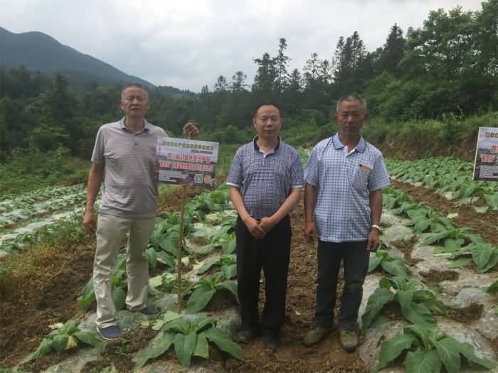 圖2:道真縣洛龍鎮(zhèn)煙草種植大戶姜今年在棄耕地種植煙草成功,2014年這塊地?zé)煵莞o病害導(dǎo)致絕收,今年沒有發(fā)生病害