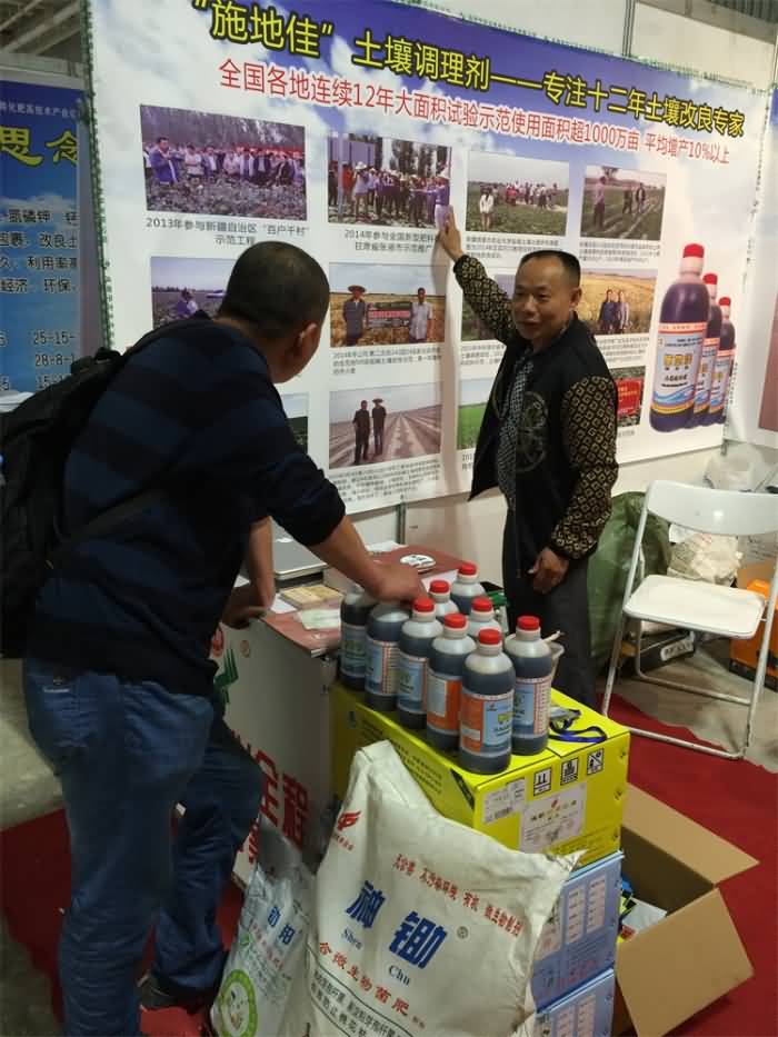 2015年9月10日,甘肅省蘭州市農(nóng)業(yè)博覽會(huì)正式開幕,成都華宏生態(tài)農(nóng)業(yè)科技有限公司總經(jīng)理李智強(qiáng),率公司參展代表一行5人,攜公司拳頭產(chǎn)品“施地佳”土壤調(diào)理劑、“神鋤”復(fù)合微生物菌肥、“吉祥雨”氨基酸植物營養(yǎng)液、以及大量元素、微量元素水溶肥料參展蘭州農(nóng)博會(huì)。