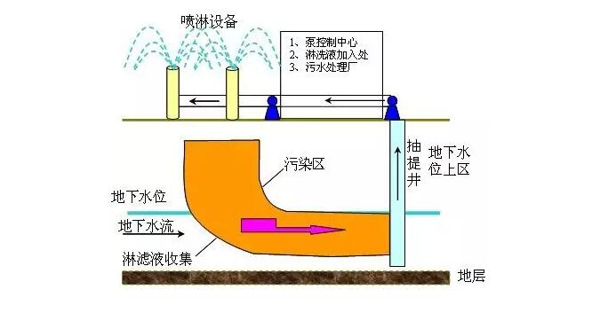 地下滲管排鹽是耕地鹽堿化改良的常用方法之一,它基于“鹽隨水來、鹽隨水去”的水鹽運行規(guī)律,通過水流的作用對其鹽堿土壤進行修復(fù),通過土壤水的動力學(xué)運動將鹽堿排除或降低鹽堿含量?!肮嗯排涮?、蓄淡壓鹽、灌水洗鹽、地下排鹽”,利用土壤水動力學(xué)行為,可以達到對土壤中鹽堿成分的一定程度的降解。淋洗法就是通過排水淋洗,洗去土壤中過多的鹽分,如下圖示。
